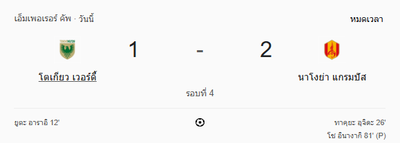- หมดเวลา: นาโงยา แกรมปัสบุกชนะโตเกียว เวอร์ดี้ 1-2 ผ่านเข้ารอบต่อไปได้สำเร็จ