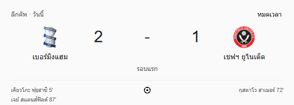 • หมดเวลา: เบอร์มิงแฮม ซิตี้ 2-1 เชฟฟิลด์ ยูไนเต็ด