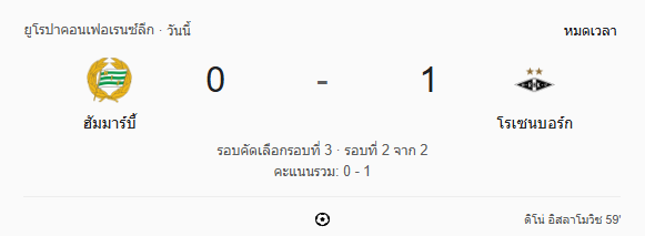 ผลบอลสด ยูฟ่ายูโรปาคอนเฟอเรนซ์ลีก ระหว่าง ฮัมมาร์บี้ vs โรเซนบอร์ก วันนี้ 15/8/68 ดูบอลย้อนหลัง คลิปไฮไลท์ ดูบอล ยูฟ่ายูโรปาคอนเฟอเรนซ์ลีก