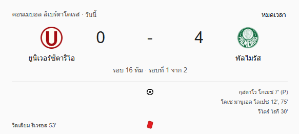 หมดเวลา: ยูนิเวอร์ซิตาริโอ 0-4 พัลไมรัส ทีมเยือนกุมความได้เปรียบมหาศาลในรอบ 16 ทีม นัดแรก