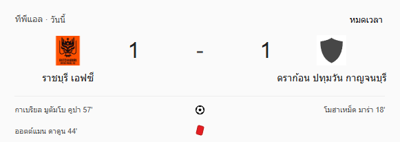 หมดเวลา: ราชบุรี เอฟซี 1-1 กาญจนบุรี