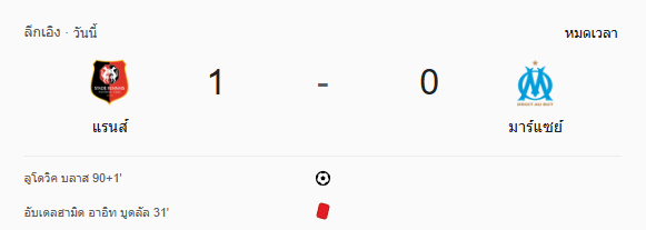 - ครบ 98 นาที: จบเกม แรนส์ เฉือนชนะ มาร์กเซย 1-0 เก็บสามแต้มสุดสำคัญ