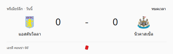 - หมดเวลา: แอสตันวิลล่า 0-0 นิวคาสเซิ่ล ยูไนเต็ด