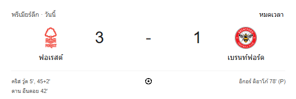 • นาทีที่ 96: จบเกม! น็อตติ้งแฮม ฟอเรสต์ เปิดบ้านอัด เบรนท์ฟอร์ด 3-1 เก็บสามแต้มเต็มแบบเชื่อมือเกมรุกครึ่งแรกและเกมรับที่นิ่งในครึ่งหลัง