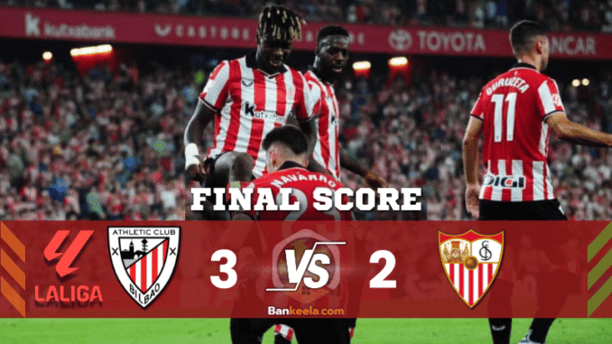 บิลเบาเริ่มเฉียบคม นำ 2-0 ตั้งแต่ครึ่งแรก แต่เซบีย่ากลับมาอย่างดุ ไล่ตีเสมอได้ ทว่า “นาวาร์โร” ยิงประตูชัยสุดคมช่วยเจ้าบ้านคว้าสามแต้มสำคัญ ส่วน นิโก้ วิลเลียมส์ โดดเด่นสุด ๆ มีทั้งยิงจุดโทษและทำแอสซิสต์ปิดบัญชี ใส่สกอร์ ผลบอลสด 3-2 อย่างสะใจคอบอล