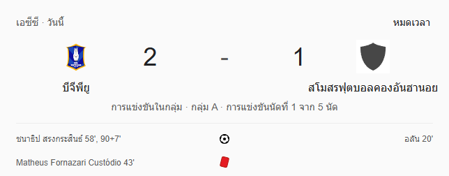 ผลบอลสด ชิงแชมป์สโมสร อาเซียน ระหว่าง บีจี ปทุม ยูไนเต็ด vs กง อัน ฮานอย วันนี้ 20/8/68 ดูบอลย้อนหลัง คลิปไฮไลท์ ดูบอล ชิงแชมป์สโมสร อาเซียน