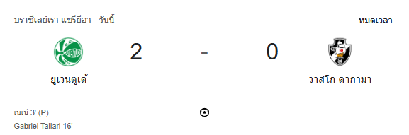 ผลบอลสด กังเปโอนาตู บราซีเลย์รู แซรียีอา ระหว่าง ยูเวนตูเด้ 2-0 วาสโก ดา กามา (อาร์เจ) วันนี้ 21/8/68