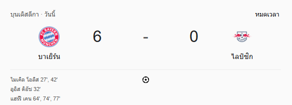 - นาทีที่ 97: หมดเวลา บาเยิร์นถล่ม 6-0 เก็บคลีนชีตสวยงาม