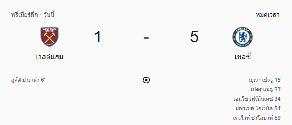 - จบครึ่งแรก: เวสต์แฮม 1-3 เชลซี