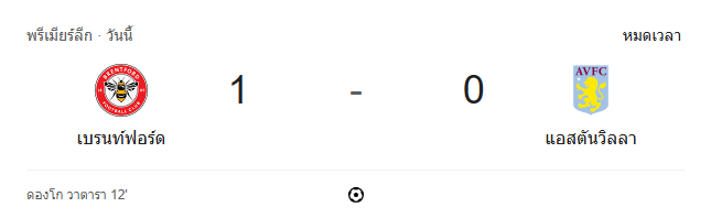 - นาทีที่ 96: จบเกม! เบรนท์ฟอร์ดเฉือนชนะ แอสตัน วิลล่า 1-0