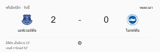 จบเกม: เอฟเวอร์ตันเปิดบ้านชนะ ไบรท์ตัน 2-0