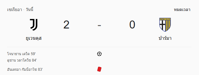 • หมดเวลา: ยูเวนตุสชนะ ปาร์ม่า 2-0