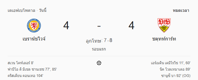 รายงานการแข่งขัน: ไอน์ทรัค บราวน์ชไวก์ 4-4 สตุ๊ตการ์ท (จบต่อเวลา / จุดโทษ 7-8)