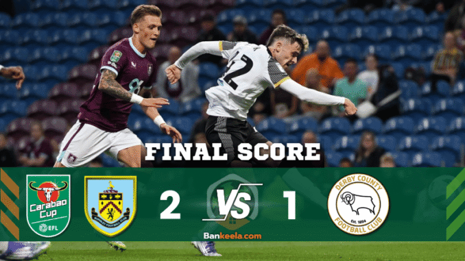 รายงานการแข่งขัน: เบิร์นลีย์ 2-1 ดาร์บี้ (ลีกคัพ รอบที่ 2)