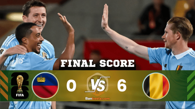 จบเกมที่ Rheinpark Stadion ในเมืองวาดุซ ลิกเตนสไตน์ เบลเยียมย้ำชัดว่าเป็นหนึ่งในเต็งลุ้นเข้ารอบของกลุ่ม J ด้วยชัยชนะ 6-0 จากเกมนี้ ไม่เพียงแต่คว้า 3 แต้มได้ตามเป้า แต่ยังได้ฟอร์มอันยอดเยี่ยมของ ยูริ ตีเลอมันส์ ที่ทำ 2 ประตู และคว้าเรตติ้ง 9.6 สูงสุดในสนาม พร้อมยกระดับมาตรฐานของทีมทั้งระบบ