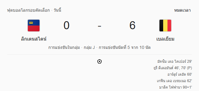• จบเกม: ลิกเตนสไตน์ 0-6 เบลเยียม