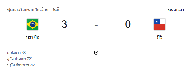 รายงานการแข่งขัน: บราซิล 3-0 ชิลี