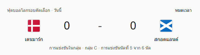 ผลบอลสด ฟุตบอลโลก 2026 รอบคัดเลือก โซนยุโรป กลุ่ม C ระหว่าง เดนมาร์ก 0-0 สกอตแลนด์ วันนี้ 6/9/68