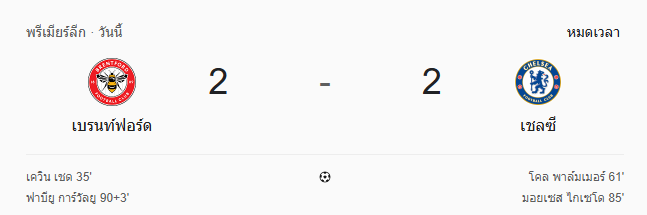 - หมดเวลา: เบรนท์ฟอร์ด 2-2 เชลซี