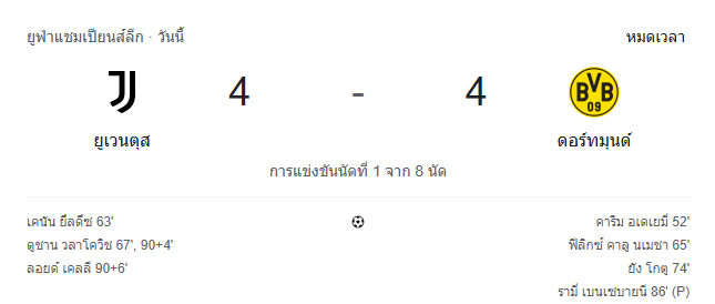 - นาทีที่ 98: จบเกม! ยูเวนตุสเสมอดอร์ทมุนด์สุดมันส์ 4-4