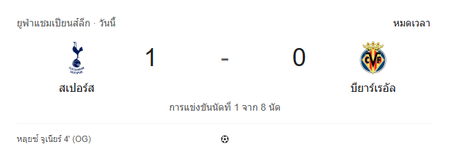 ผลบอลสด ยูฟ่าแชมเปี้ยนส์ลีก ระหว่าง สเปอร์ส vs บียาร์เรอัล วันนี้ 17/9/68 ดูบอลย้อนหลัง คลิปไฮไลท์ ดูบอล ยูฟ่าแชมเปี้ยนส์ลีก