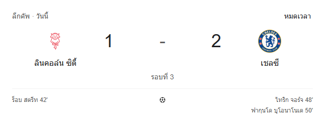 - จบครึ่งแรก: ลินคอล์น ซิตี้ 1-0 เชลซี