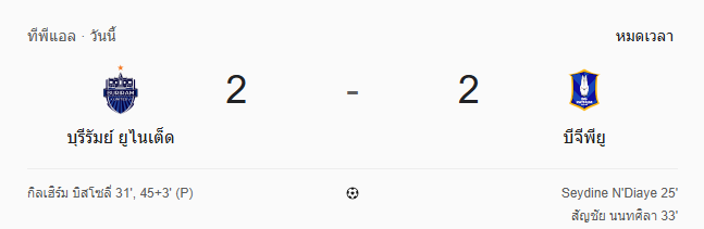 รายงานการแข่งขัน: บุรีรัมย์ ยูไนเต็ด 2-2 บีจี ปทุม ยูไนเต็ด