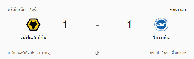 ดูบอลสดพรีเมียร์ลีก ถ่ายทอดสด วูล์ฟแฮมป์ตัน พบ ไบรท์ตัน โฮฟ อัลเบี้ยน 5/10/68