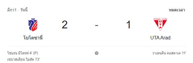 ผลบอลสด โรมาเนีย ลีกา 1 ระหว่าง โบโตซานี่ vs ยูทีเอ อารัด วันนี้ 7/10/68 ดูบอลย้อนหลัง คลิปไฮไลท์ ดูบอล โรมาเนีย ลีกา 1