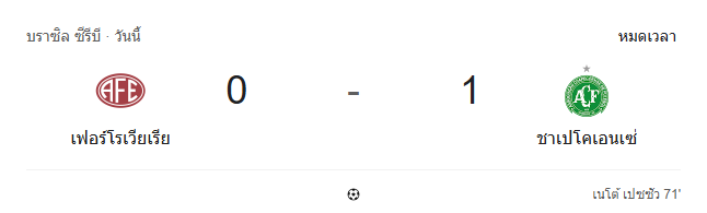 และ ริการ์ดินโญ่ (เฟอร์โรเวียเรีย) โดนใบเหลืองหลังฟาวล์แรง - นาทีที่ 35: ชาเปโคเอนเซ่บุกต่อเนื่อง เปโรตติ ยิงด้วยขวาโดนบล็อก ก่อนที่ มาร์ซินโญ่ จะได้ซัดซ้ำแต่ก็โดนขวางอีก จังหวะต่อมาได้เตะมุมแต่ไม่ได้ประตู
