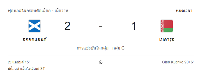 ผลบอลสด ฟุตบอลโลก รอบคัดเลือก โซนยุโรป ระหว่าง สกอตแลนด์ vs เบลารุส วันนี้ 12/10/68 ดูบอลย้อนหลัง คลิปไฮไลท์ ดูบอล ฟุตบอลโลก รอบคัดเลือก โซนยุโรป