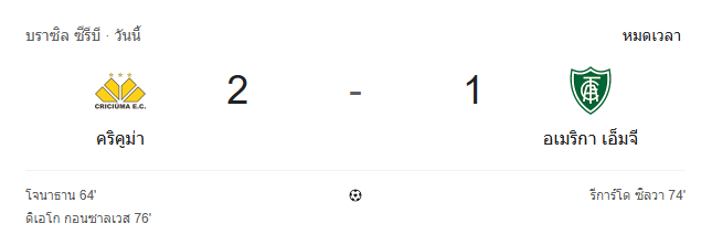 ผลบอลสด คัมปิโอนาโต บราซิเลียโร ซีรีบี ระหว่าง คริคูม่า vs อเมริกา เอ็มจี วันนี้ 13/10/68 ดูบอลย้อนหลัง คลิปไฮไลท์ ดูบอล คัมปิโอนาโต บราซิเลียโร ซีรีบี