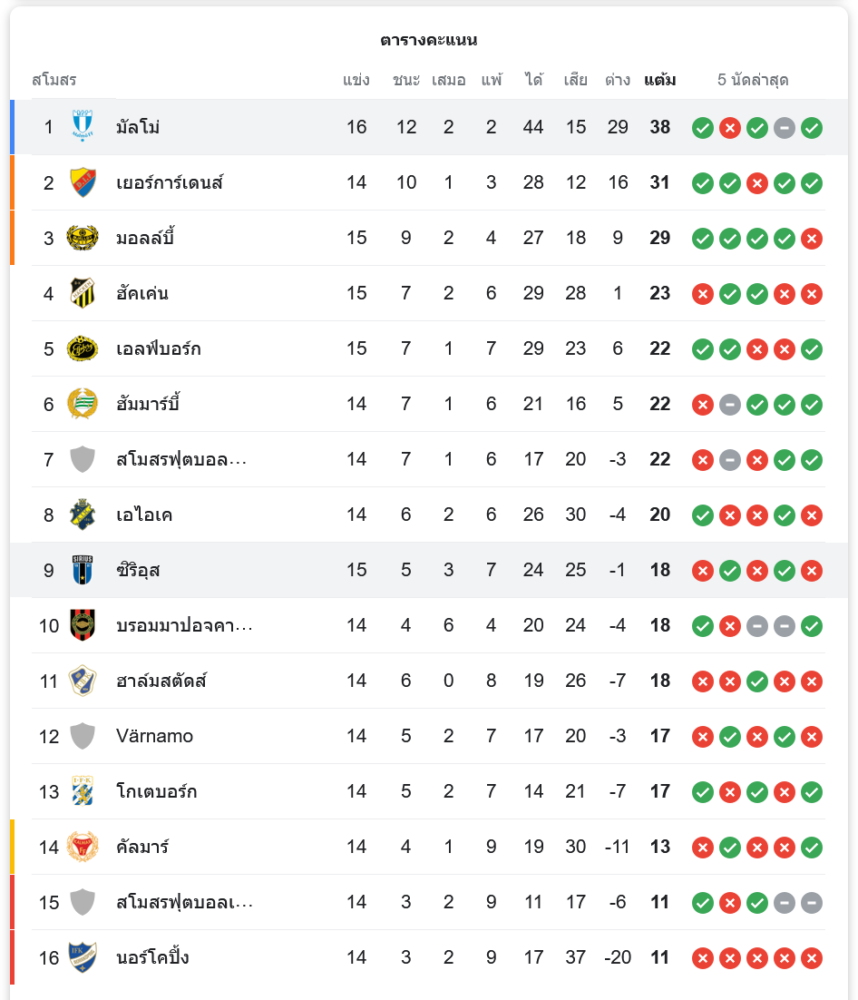 หลังจากการแข่งขันนี้ มัลโม่ เอฟเอฟ มีคะแนนรวม 38 คะแนน จากการลงแข่ง 16 นัด ชนะ 12 นัด เสมอ 2 นัด แพ้ 2 นัด อยู่ในอันดับที่ 1 ของตารางคะแนน ขณะที่ซิริอุสมีคะแนนรวม 18 คะแนน จากการลงแข่ง 15 นัด ชนะ 5 นัด เสมอ 3 นัด แพ้ 7 นัด อยู่อันดับที่ 9 ของตาราง