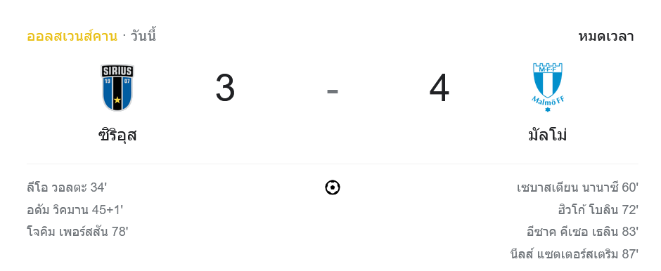 การแข่งขันฟุตบอลออลสเวนส์คาน 2024 ระหว่างไอเคซิริอุสเอฟเค กับ มัลโม่ เอฟเอฟ จบลงด้วยผลการแข่งขันที่น่าตื่นเต้น โดยมัลโม่ เอฟเอฟ สามารถเอาชนะได้ด้วยสกอร์ 4-3