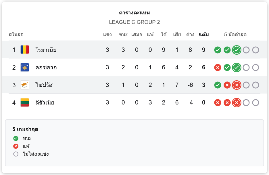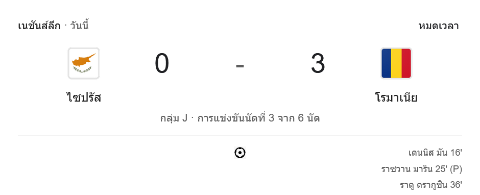 ตารางคะแนนยูฟ่าเนชันส์ลีก 2024 ระหว่าง ไซปรัส 0-3 โรมาเนีย