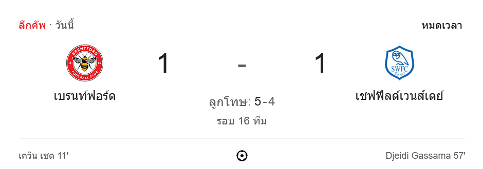 ในการแข่งขัน อีเอฟแอลคัพ 2024 รอบ 16 ทีมสุดท้าย ระหว่าง เบรนท์ฟอร์ด และ เชฟฟิลด์ เว้นส์เดย์ ที่เสมอกัน 1-1 ในเวลา 90 นาที แต่เบรนท์ฟอร์ดทำได้ดีกว่าในช่วงดวลจุดโทษ เอาชนะไปด้วยสกอร์ 5-4 ผ่านเข้าสู่รอบต่อไปได้สำเร็จ ในเกมที่ทั้งสองทีมสู้กันอย่างเข้มข้นและน่าติดตาม บ้านกีฬา สรุปทุกจังหวะสำคัญในแมตช์นี้