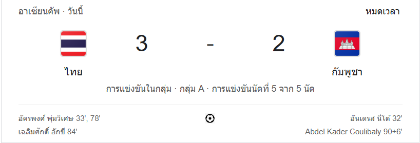จบเกม: ไทยชนะกัมพูชา 3-2 ในการแข่งขันที่ดุเดือดและเข้มข้นตลอด 90 นาที