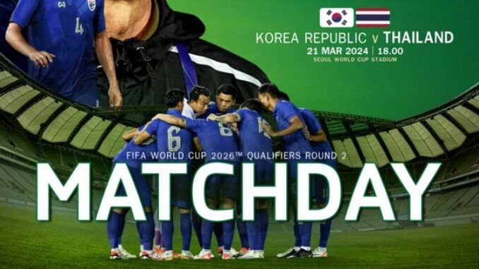 ถ่ายทอดสดฟุตบอลโลก 2026 รอบคัดเลือก โซนเอเชีย ทีมชาติเกาหลีใต้ vs ทีมชาติไทย วันนี้ 21 มีนาคม 2567 ดูบอลย้อนหลัง คลิปไฮไลท์