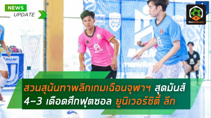 การแข่งขันฟุตซอลระดับอุดมศึกษาแห่งปี “IMANE THAILAND FUTSAL UNIVERSITY SUPER LEAGUE 2024” สร้างความตื่นเต้นให้กับแฟนฟุตซอลทั่วประเทศ เมื่อ มหาวิทยาลัยราชภัฏสวนสุนันทา โชว์ฟอร์มสุดดุ พลิกแซงชนะ จุฬาลงกรณ์มหาวิทยาลัย ไปแบบดุเดือด 4-3 เก็บชัยชนะนัดที่สองของทัวร์นาเมนต์นี้ได้สำเร็จ