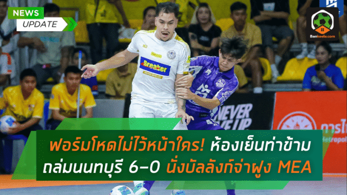 ศึก MEA ฟุตซอลไทยลีก 2025 เข้าสู่แมตช์เดย์ที่ 2 เมื่อวันอาทิตย์ที่ 18 พฤษภาคมที่ผ่านมา และยังคงระอุไม่หยุด โดยเฉพาะฟอร์มของแชมป์เก่าอย่าง ห้องเย็นท่าข้าม ที่โชว์ความเฉียบขาด ไล่ถล่ม นนทบุรี ไปแบบไม่ไว้หน้า 6-0 ทะยานขึ้นจ่าฝูงแบบสง่างามด้วยประตูได้เสียที่ดีที่สุดในลีก