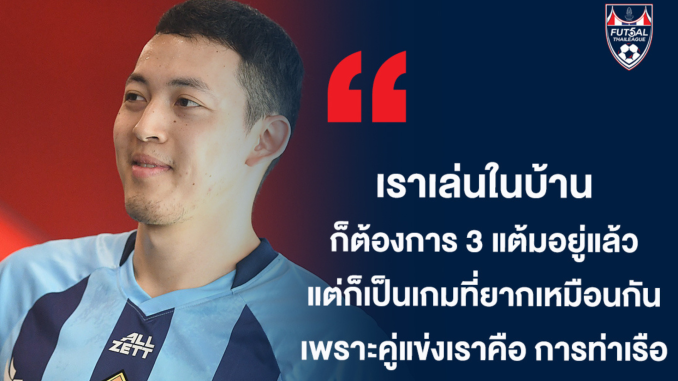 เกมแรกกับการท่าเรือ เอเอสเอ็ม จะเป็นเกมที่สนุกและเร้าใจสำหรับแฟนฟุตซอลอย่างแน่นอน คู่แข่งอย่างการท่าเรือมีความแข็งแกร่งทุกด้าน ทั้งผู้เล่นและแฟนบอลที่คอยสนับสนุน แต่เราเล่นในบ้านและต้องการคว้า 3 แต้ม แต่ก็จะเป็นเกมที่ยากเพราะการท่าเรือเป็นทีมที่แข็งแกร่งมาก