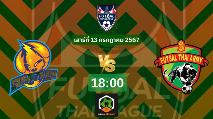ถ่ายทอดสดการแข่งขัน ฟุตซอล ฟุตซอลไทยลีก2024/25 สุราษฎร์ธานี vs ฟุตซอลไทยอาร์มี่ วันนี้ 13 กรกฎาคม 2567 ที่อาคารเฉลิมพระเกียรติ 72 พรรษา มีนบุรี