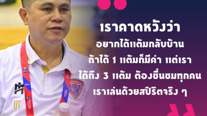 โค้ชอุดม ทวีสุข กุนซือใหญ่ การท่าเรือ เอเอสเอ็ม เผยความรู้สึกสุดปลาบปลื้ม หลังพาทีมบุกเฉือนชนะ บลูเวฟ ชลบุรี 2-1 ในศึกฟุตซอลไทยลีก 2024/25 นัดเปิดฤดูกาล