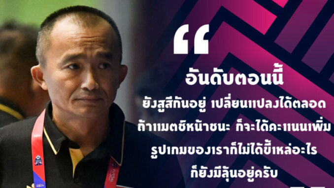 “ส่วนอันดับตอนนี้ยังสูสีกันอยู่ (ราชนาวี รั้งอันดับ 13 มี 3 แต้ม) ทุกอย่างยังเปลี่ยนแปลงได้ ถ้าแมตช์หน้าเราชนะ เจที ทรัคฯ ได้ ก็จะได้คะแนนเพิ่ม รูปเกมของเราก็ไม่ได้ขี้เหล่อะไร ยังมีลุ้นอยู่ครับ”