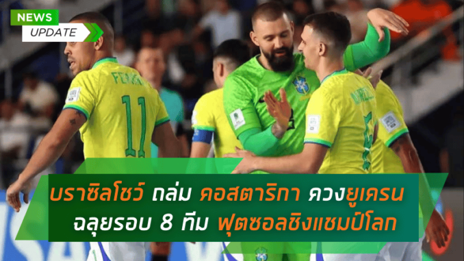ศึก ฟุตซอลชิงแชมป์โลก 2024 เดินหน้าสู่รอบก่อนรองชนะเลิศเป็นที่เรียบร้อย หลังจากที่ทีมเต็งแชมป์อย่าง บราซิล โชว์ฟอร์มสุดโหด ถล่มเอาชนะ คอสตาริกา ไปแบบขาดลอยถึง 5-0 ขณะที่ ยูเครน ก็ไม่แพ้กัน จัดการเขี่ย เนเธอร์แลนด์ พ้นทางด้วยสกอร์ 3-1 ส่งผลให้ทั้งสองทีมผ่านเข้าสู่รอบ 8 ทีมสุดท้ายได้อย่างสมศักดิ์ศรี