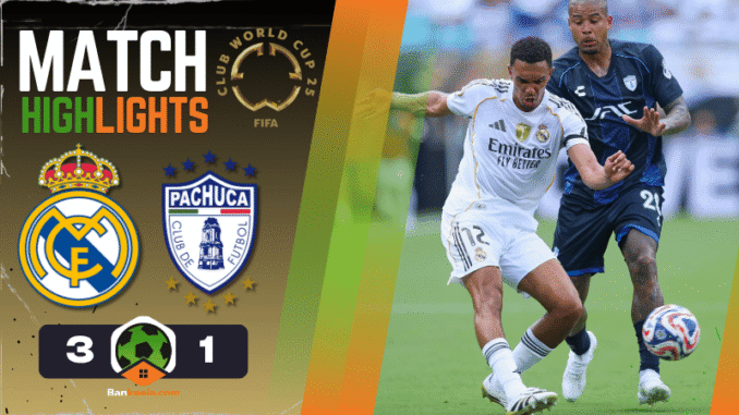 เรอัล มาดริด โชว์ฟอร์มบอลโลกสมราคายอดทีมยุโรป เปิดบ้านกด ปาชูก้า 3-1 เก็บสามแต้มสำคัญในศึกฟีฟ่าคลับเวิลด์คัพ 2025 รอบแบ่งกลุ่ม H เกมนี้ “จู๊ด เบลลิงแฮม” ยิงเปิดหัวก่อนเพื่อน ตามด้วยประตูของ “อเล็กซานเดอร์ กาเยร์” และ “เฟเดริโก้ บัลเบร์เด้” ส่งราชันชุดขาวหนีห่างถึง 3-0 ก่อนโดนปาชูก้าตีไข่แตกปลอบใจท้ายเกม ผลบอลสด ชี้ชัดว่า มาดริดแม้โดนบุกใส่แต่ยังเด็ดขาดในพื้นที่สุดท้าย คว้า 3 แต้มเต็มอย่างมืออาชีพ