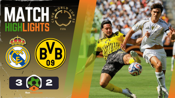 เกมฟีฟ่าคลับเวิลด์คัพ ชิงแชมป์สโมสรโลกค่ำคืนนี้เดือดสะใจคอลูกหนัง “ราชันชุดขาว” เรอัล มาดริด แซงเฉือน “เสือเหลือง” ดอร์ทมุนด์ 3-2 สะท้านรอบ 8 ทีม ช่วงต้นเกมดอร์ทมุนด์ออกนำไว แต่มาดริดโชว์หัวใจแชมป์ เร่งเครื่องแซงแบบสุดดราม่า ผลบอลสด ยืนยันชัดว่าเกมนี้มีครบทั้งจังหวะพลิกเกม, ลูกยิงสุดคม และความมันส์ระดับเวิลด์คลาส