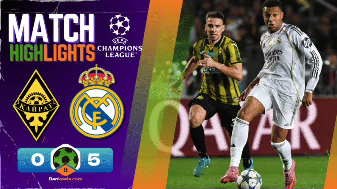 ราชันชุดขาว “เรอัล มาดริด” ระเบิดฟอร์มสุดดุ บุกยำเจ้าถิ่น เอฟซี ไครัต อัลมาตี้ ขาดลอย 5-0 ในศึกยูฟ่าแชมเปียนส์ลีก รอบแบ่งกลุ่ม นัดที่ 2 เกมนี้ คีลิยัน เอ็มบัปเป้ โชว์ความโหดเหมาคนเดียวแฮตทริก (25′, 52′, 73′) ขณะที่ เอดูอาร์โด้ คามาวินก้า และ บราอิม ดิอาซ ซัดเพิ่มท้ายเกม ทำให้ราชันเก็บ 6 แต้มเต็มจาก 2 นัดแรก ผลบอลสด ระบุว่าแม้เจ้าบ้านจะพยายามสู้เต็มที่ แต่เกมรับสุดยวบและโดนความเร็ว+ความคมของมาดริดเล่นงานจนไปไม่เป็น