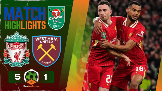 บ้านกีฬา ขอพาแฟนๆ สายฟุตบอลมาติดตาม ไฮไลท์บอลวันนี้ กับแมตช์ระหว่าง ลิเวอร์พูล ที่ฟอร์มแรงไม่หยุดไล่ยิง เวสต์แฮม ยูไนเต็ด 5-1 ในรอบที่ 3 ของศึกลีกคัพ โดยมีผู้เล่นสำคัญอย่าง โคดี้ กัคโป ทำสองประตูในช่วงท้ายเกม พาทีมลิเวอร์พูลทะยานเข้ารอบต่อไปอย่างงดงาม