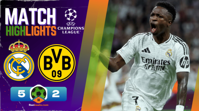 เรอัล มาดริด โชว์ฟอร์มสุดดุดัน เปิดบ้านถล่ม โบรุสเซีย ดอร์ทมุนด์ 5-2 แม้จะโดนนำไปก่อนถึงสองประตูในครึ่งแรก แต่ความพยายามและฟอร์มของ วินิซิอุส จูเนียร์ ที่ยิงไปสองประตูในช่วงท้าย ทำให้ทีมกลับมาคว้าชัยในที่สุด